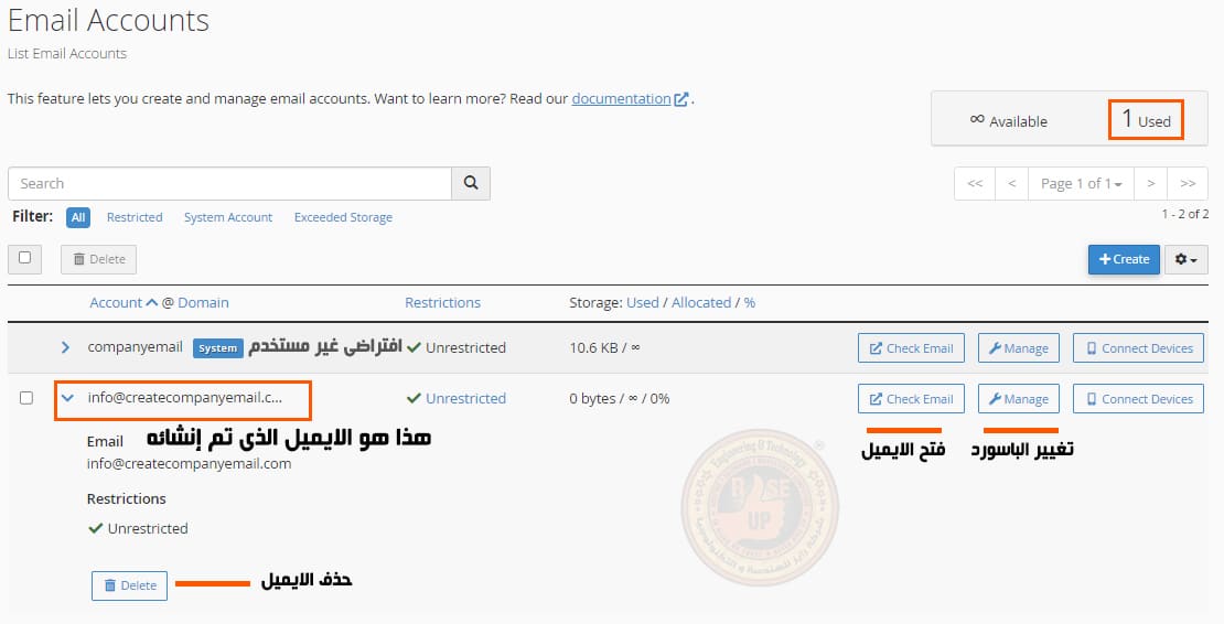 لكى تقوم بعمل بريد لشركتك من شركة بريد.كوم في قطر سيتم الدخول على Email Accounts لكى يتم إنشاء بريد/ حذف بريد/ فتح بريد/ تغيير كلمة المرور بريد كما يمكنك يمكنك مراقبة حركة بريد شركتك في قطر .
