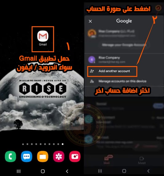 بعد إنشاء بريد شركة المقدم من شركة بريد تستطيع فتح بريد الشركة من Webmail وكذلك يمكن للموظفين فتح البريد من خلال تطبيق Gmail سواء اندرويد / ايفون,افتح التطبيق ثم اضغط على صورة الحساب ثم اضافة حساب اخر.