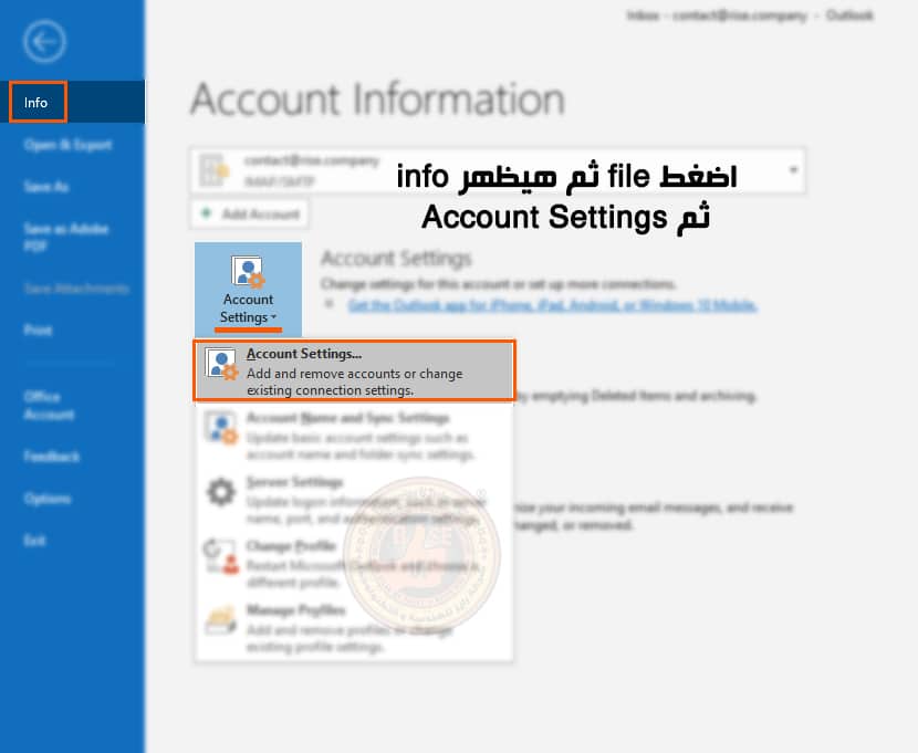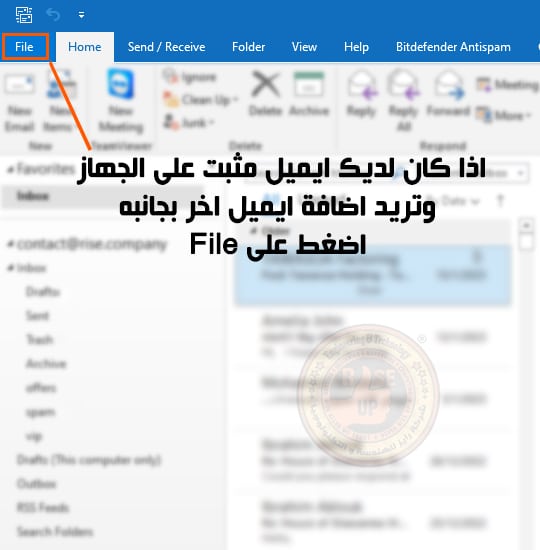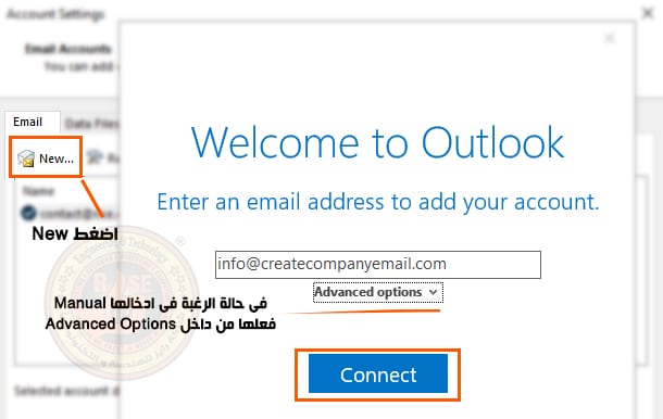 بعد إنشاء بريد شركة المقدم من شركة بريد تستطيع فتح بريد الشركة من Webmail وكذلك يمكن للموظفين فتح البريد من خلال برنامج Outlook وليس موقع Outlook , فهذا البرنامج احترافي ياتى مع word و Excel بعد فتحه هيسئل عن البريد الجديد او في حالة وجود بريد اخر اضغط على File.