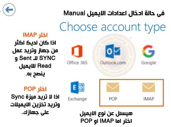 بريد الشركة دائما من شركة بريد في قطر يعمل على بروتوكول IMAP او POP كلاهما يعمل بدون اى مشاكل عدا ان IMAP ينصح به لانه يتميز بخاصية المزامنة Sync عند قراءة بريد Read او ارسال بريد Sent فعندما تذهب الى جهاز اخر تجد ان read للبريد واضح والبريد المرسل في Sent موجود على الجهاز الاخر وهذا عكس POP الذى يخزن البريد ولا يعمل Sync.