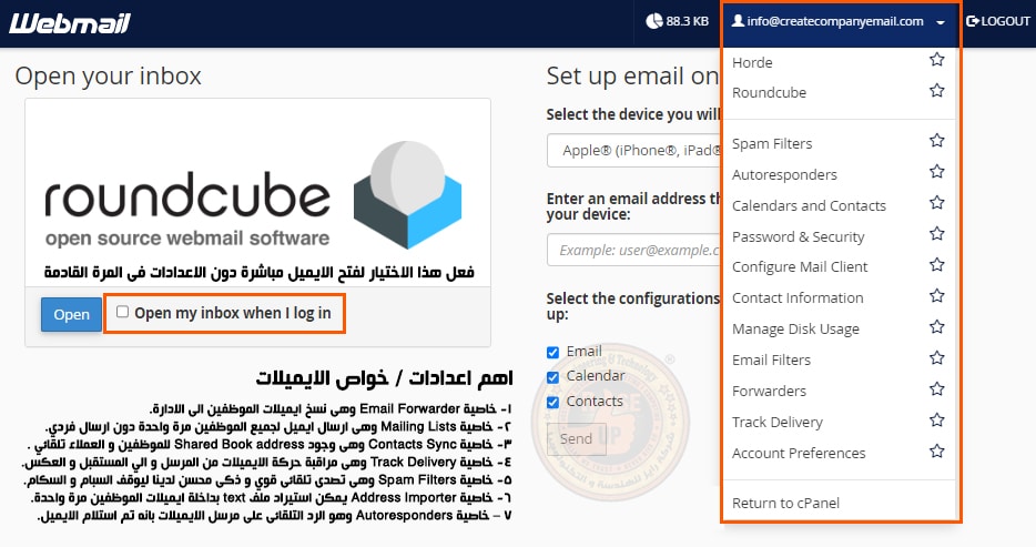 شرح كيفية فتح بريد الموظفين من خلال Webmail yourcompany.com/webmail